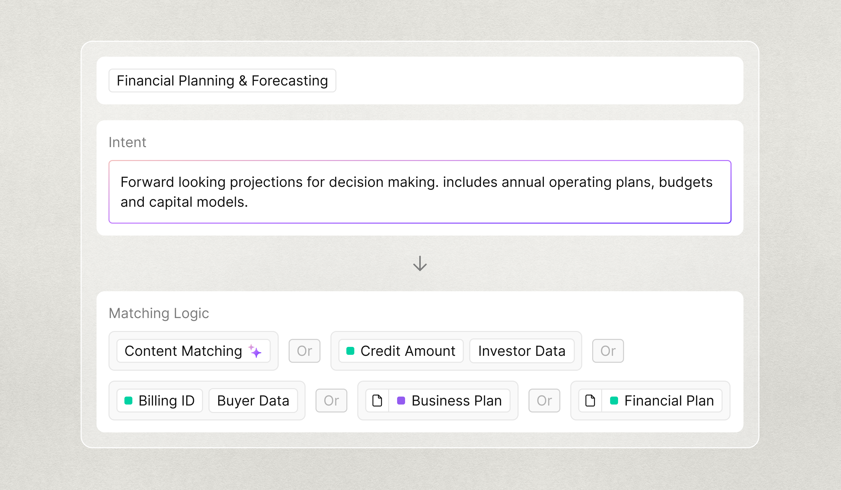 LLM-powered matching uses intent and full document context to map content to the right Topic, not keywords alone.