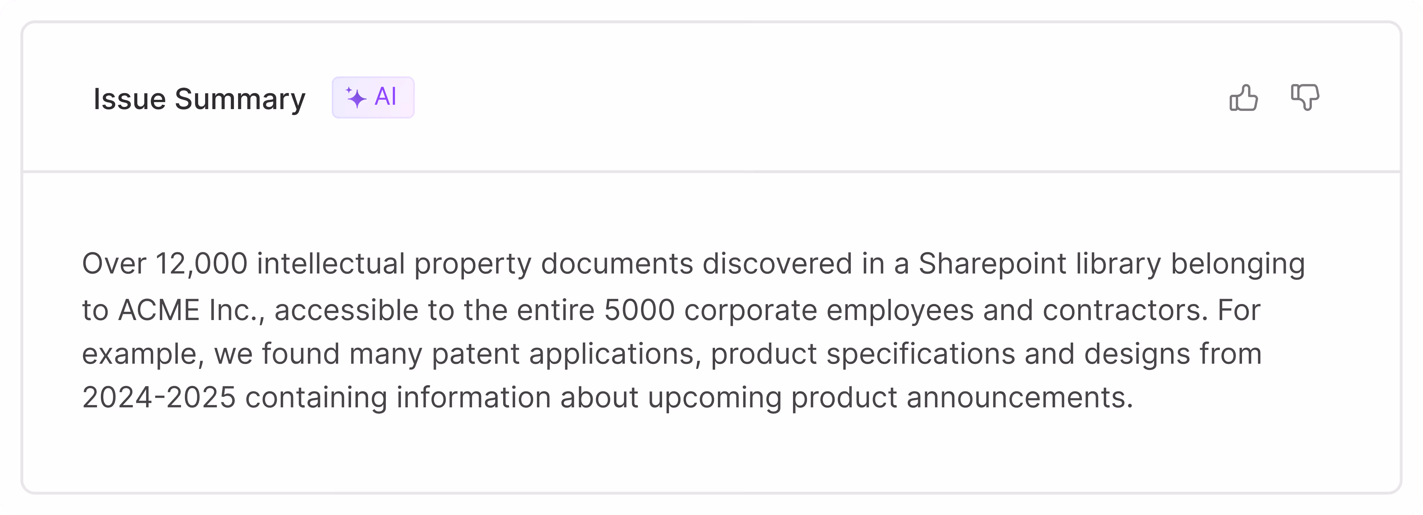 Your crown jewels hide in unstructured content legacy tools miss. Our classification engine learns your business and classifies IP, source code, contracts, and more so nothing critical stays hidden.