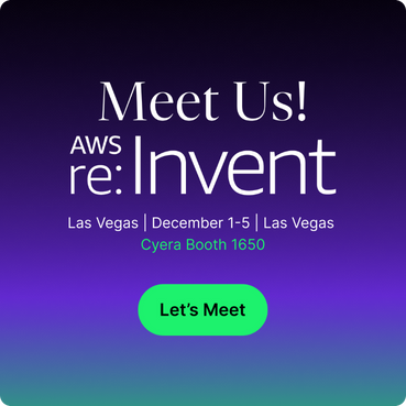 Secure dedicated time with the Cyera team at AWS re:Invent. Discover how we can help you accelerate your data security strategy, strengthen compliance, and unlock the full potential of AI across your organization.