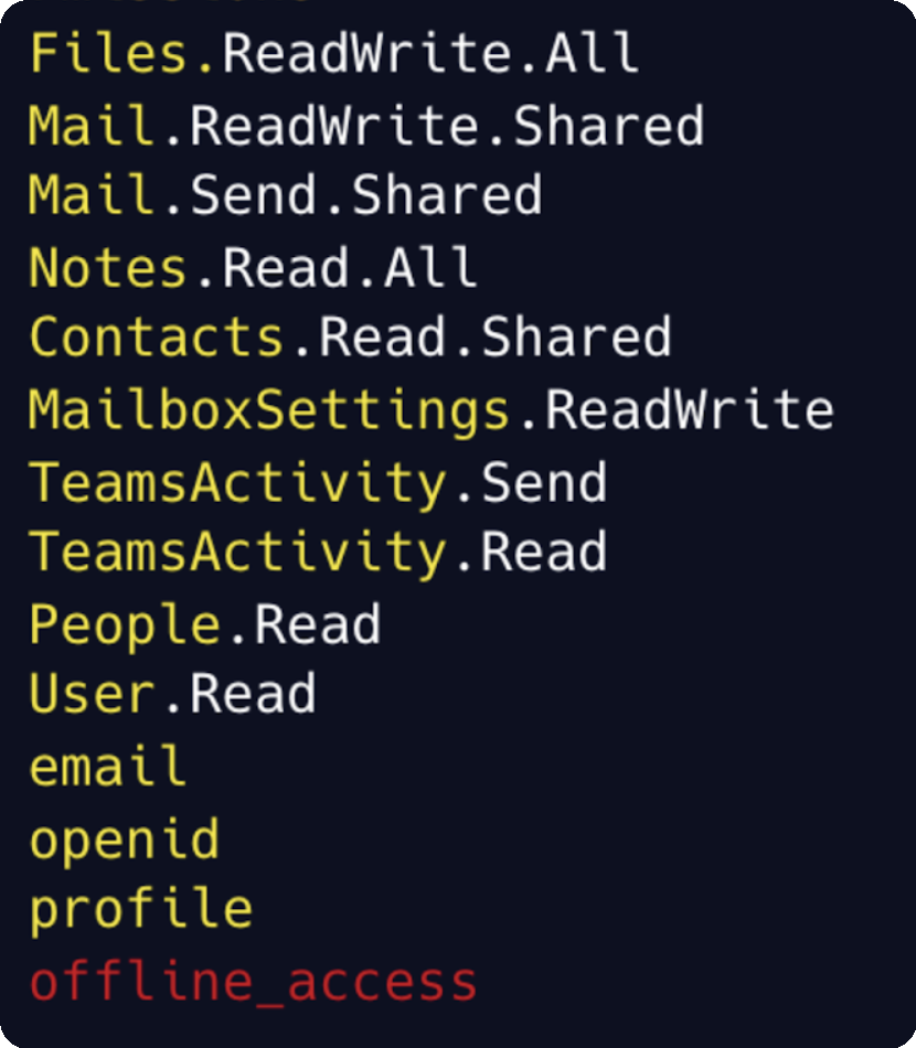 The presence of offline_access was particularly notable, as it enables long-lived access without ongoing user interaction.